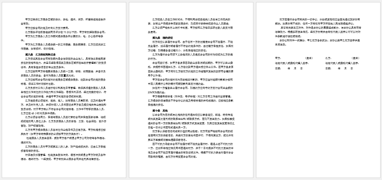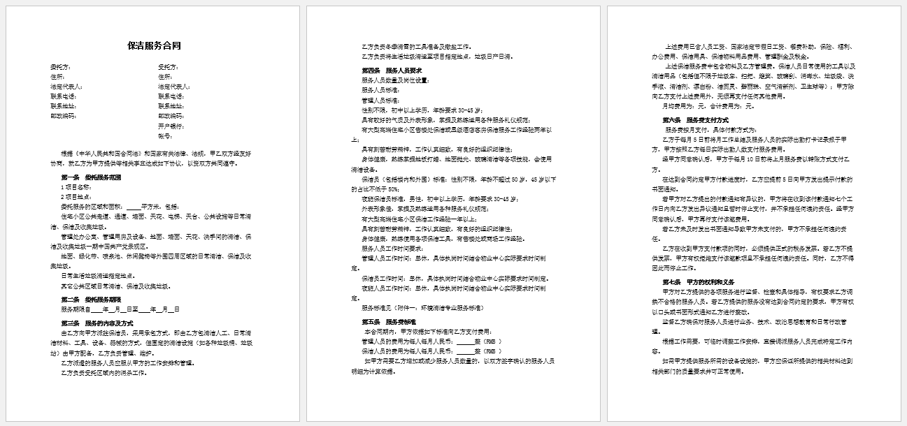 保洁服务合同模板一