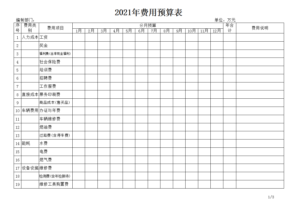 年度费用预算表-模板-