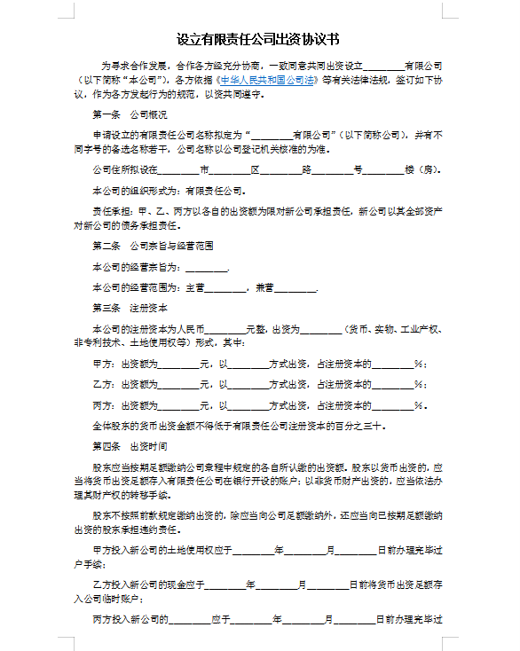出资协议书(1)