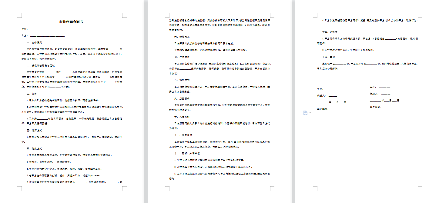 服装代理合同书范本二