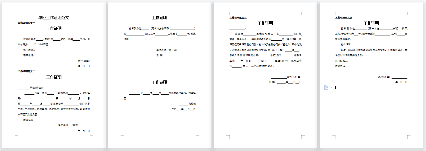 单位工作证明