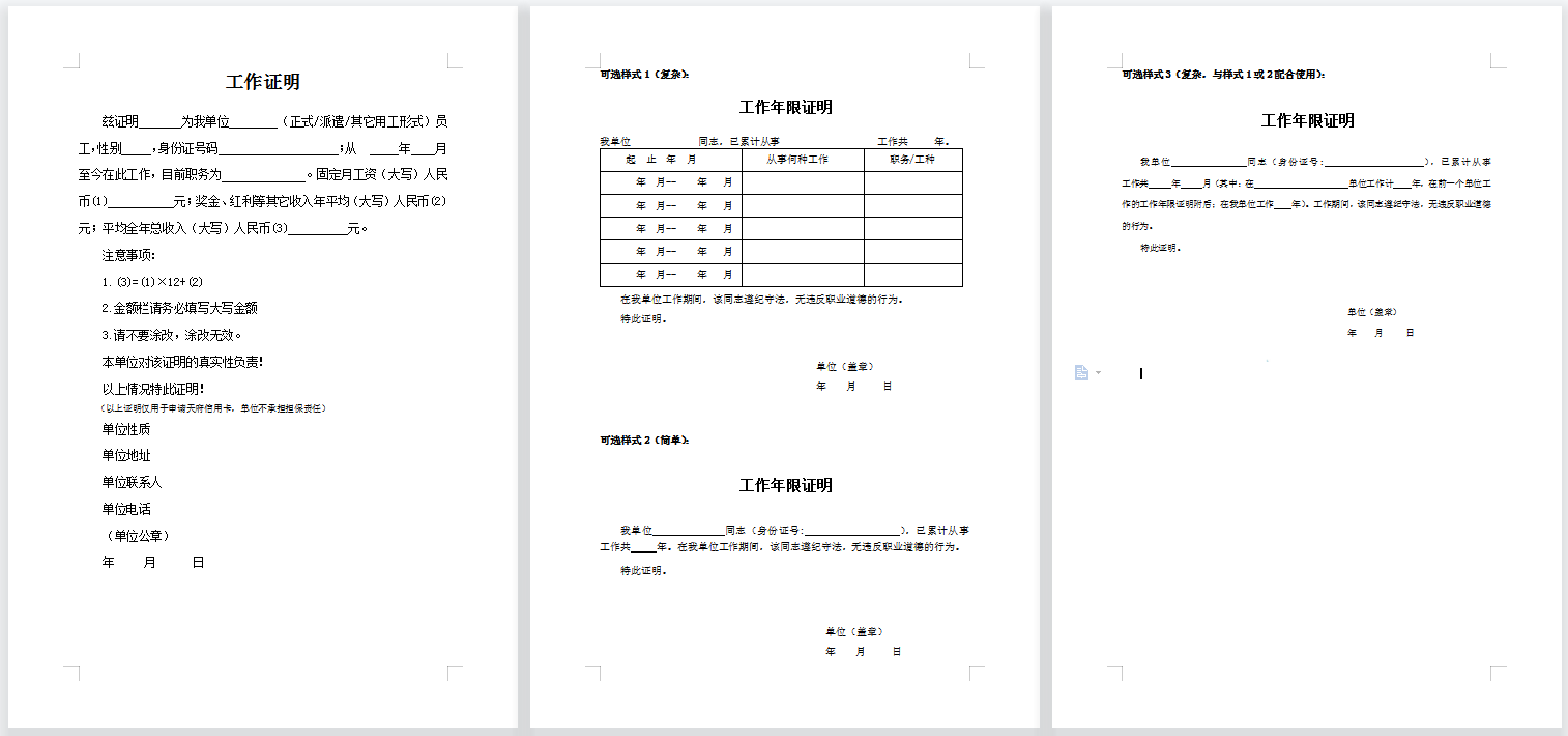 工作证明(样本)