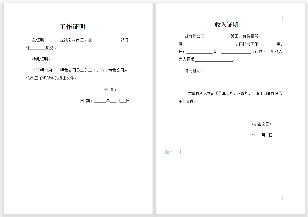 工作证明范本