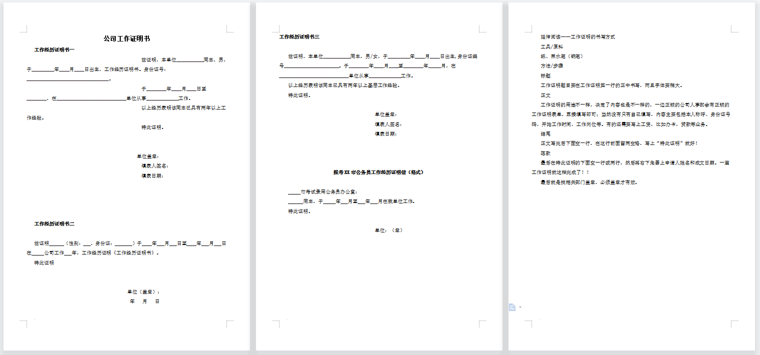 公司工作证明书