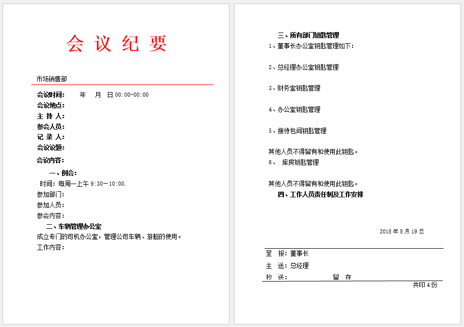 公司会议纪要-标准模板
