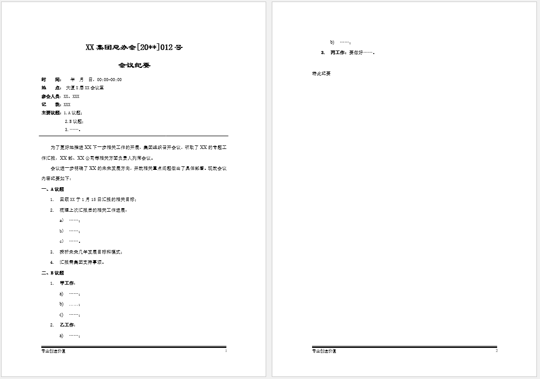 会议纪要(模版)