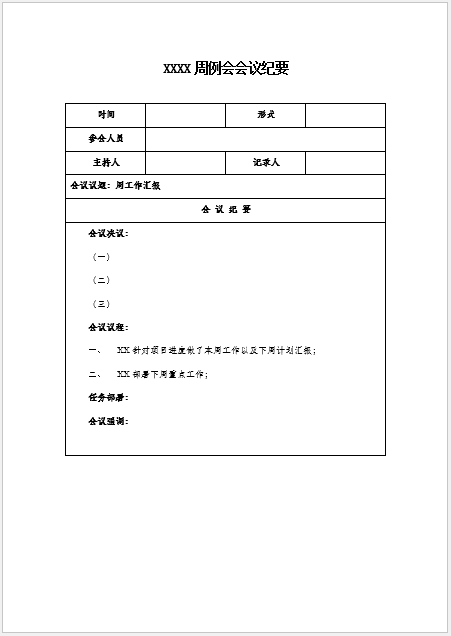 周例会会议纪要-模板