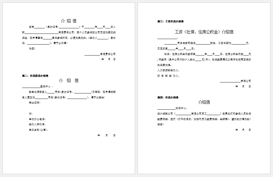 社保经办人介绍信