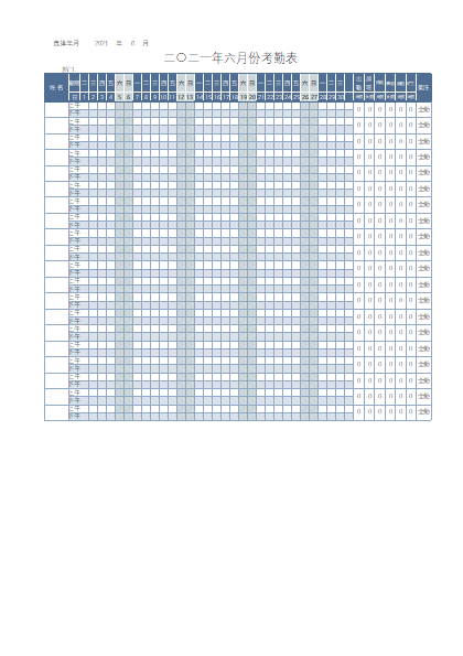 公司员工考勤表(自动计算)