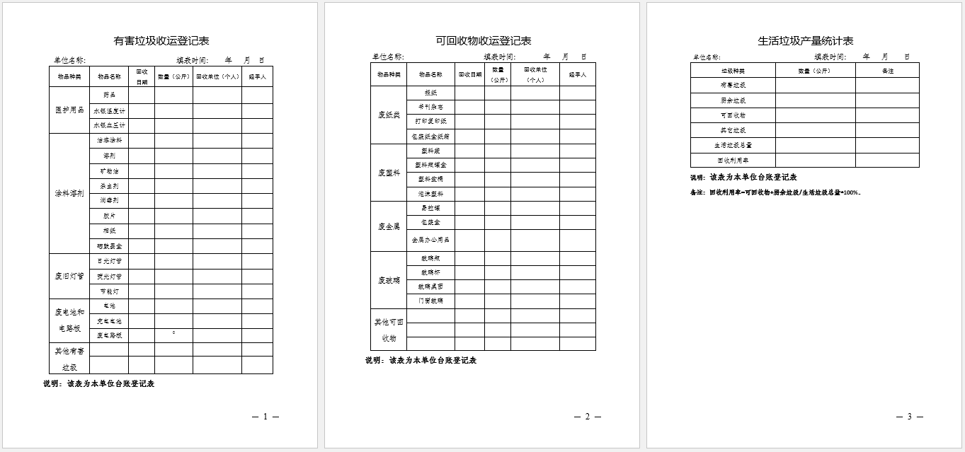 小学垃圾分类台账