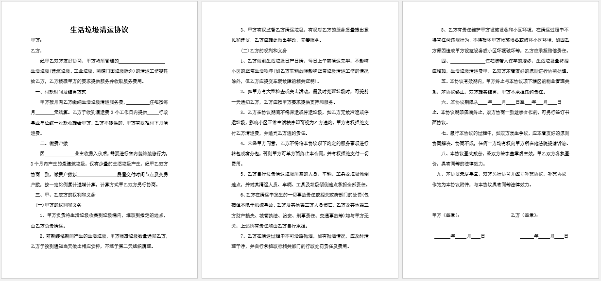 垃圾清运协议