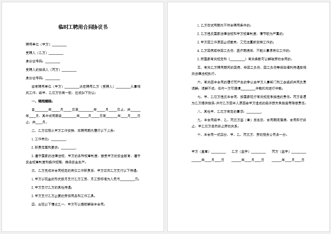 临时工聘用合同协议书官方