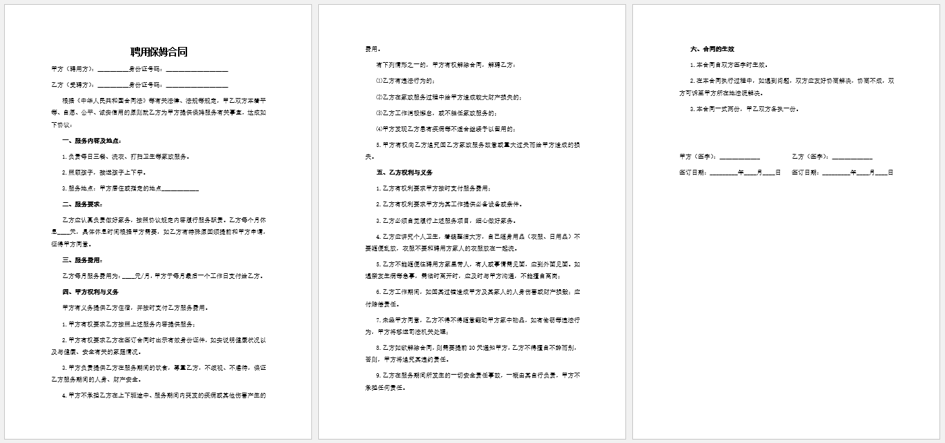 聘用保姆合同范本(三)