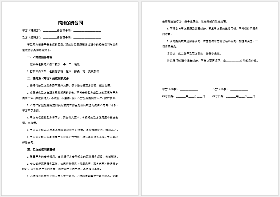 聘用保姆合同范本(一)