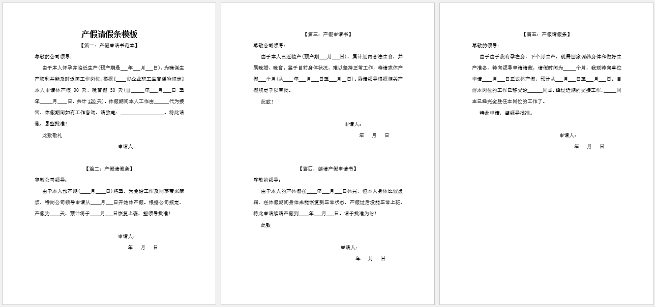 产假请假条模板