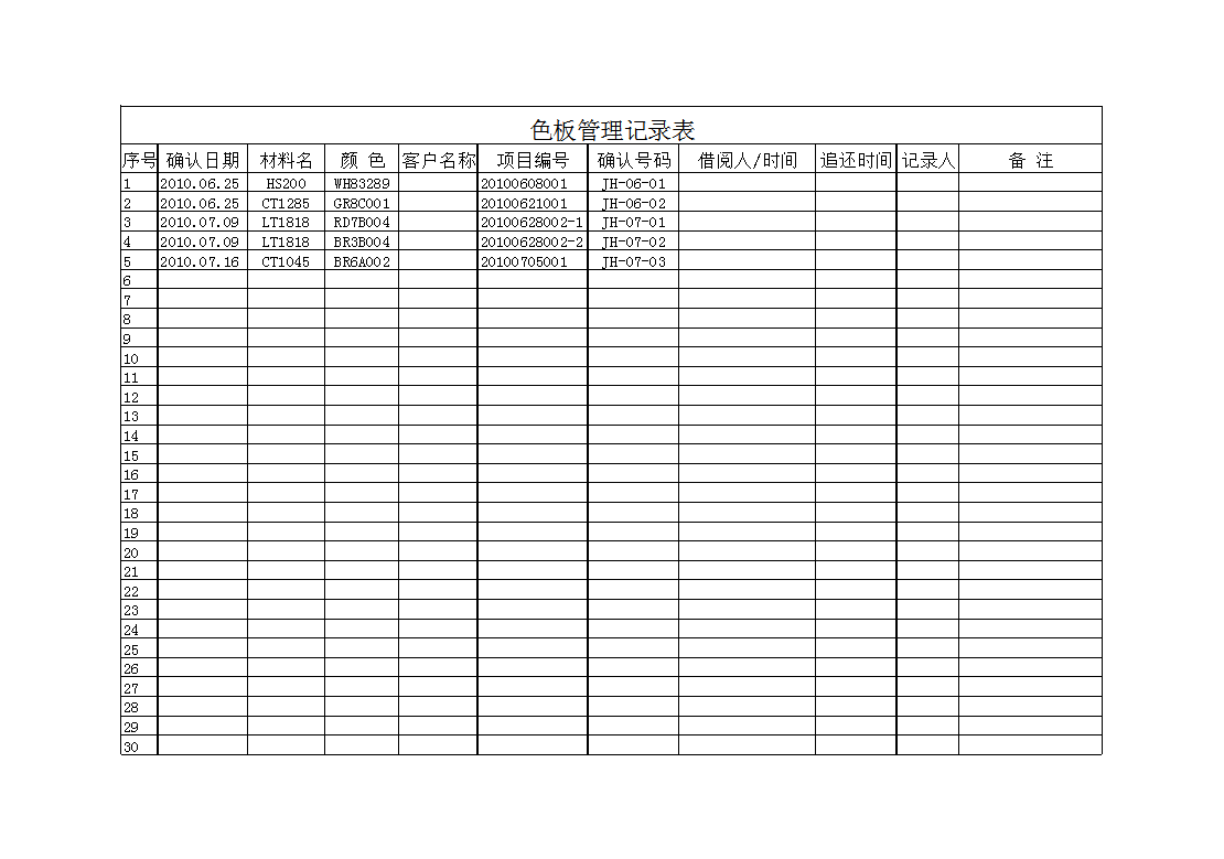 色板管理记录表