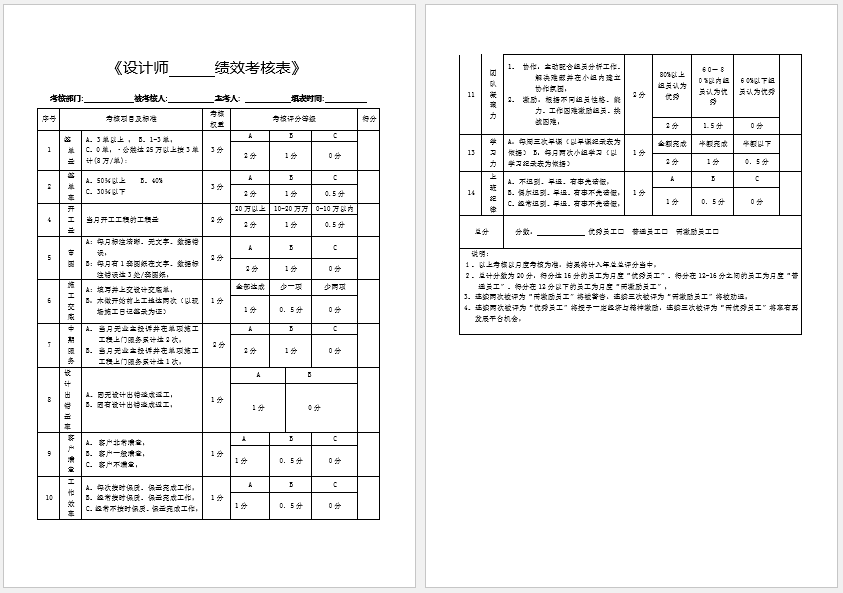 《设计师绩效考核表》