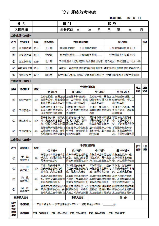 服装企业设计师绩效考核表(1)