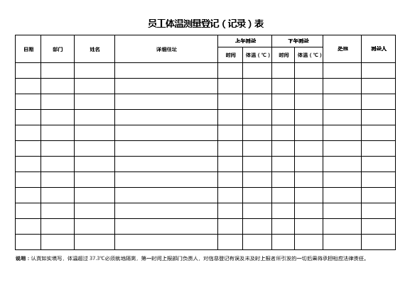 员工体温测量登记表