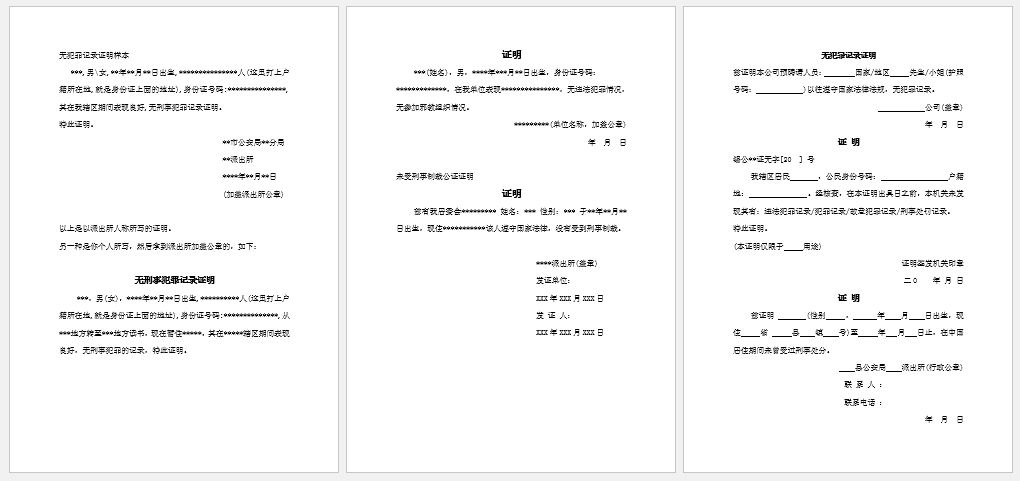 无犯罪记录证明样本1