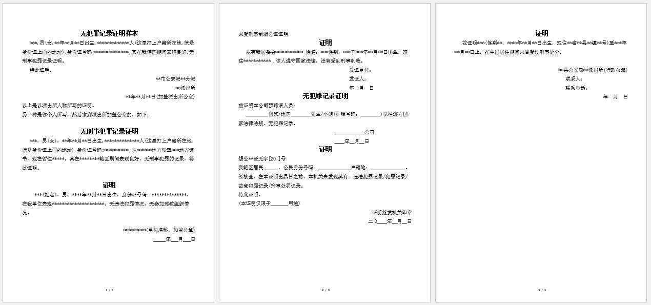无犯罪记录证明样本2