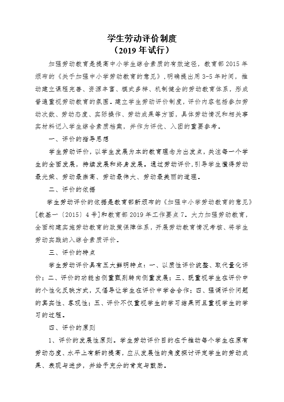 学生劳动评价制度
