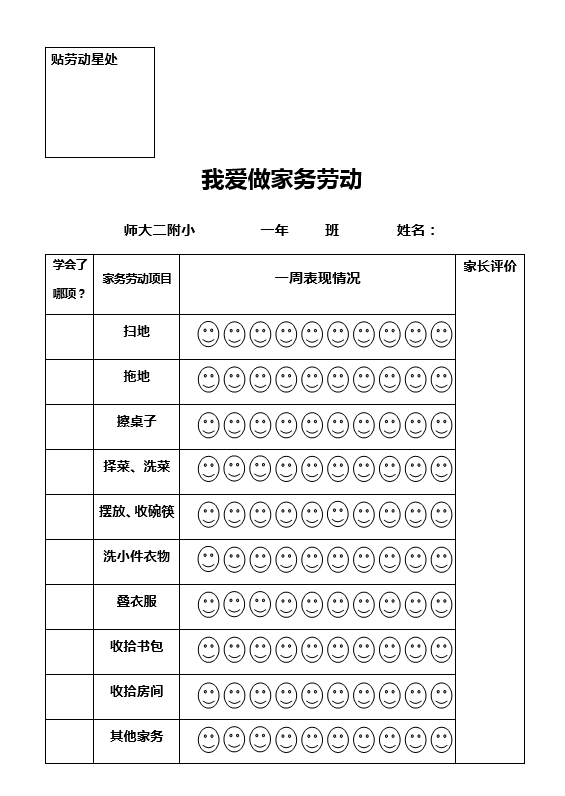 我爱做家务劳动-评价表