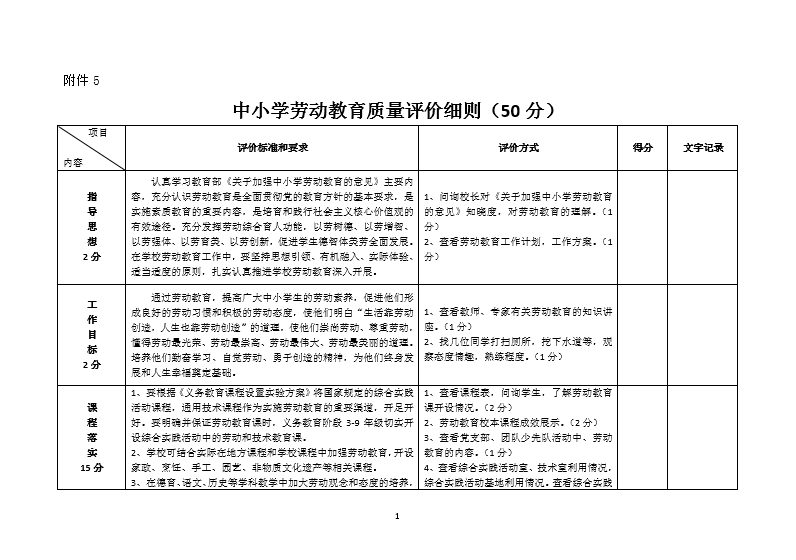 中小学劳动教育质量评价细则