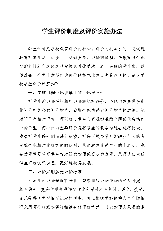 学生评价制度及评价实施办法