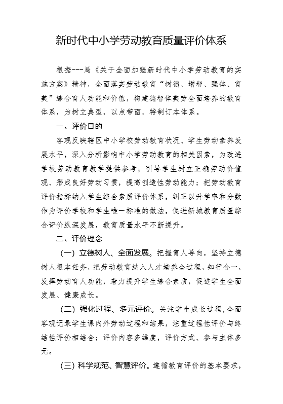新时代中小学劳动教育质量评价体系