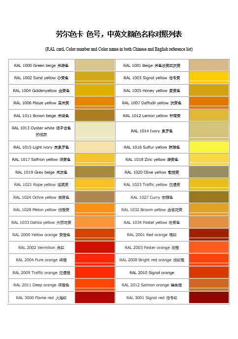 劳尔色卡-色号-中英文颜色名称对照列表
