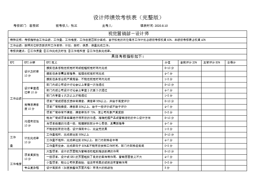 设计师绩效考核表(完整版)