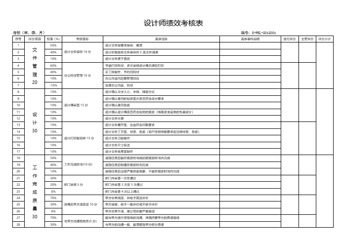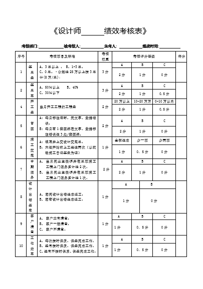 《设计师绩效考核表》